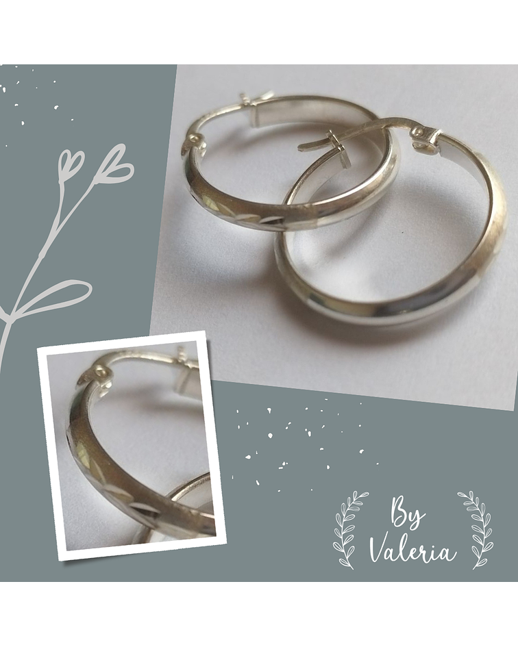 Candongas semi diamantadas con grabado lineal en plata 925.