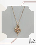 Conjunto dos piezas cadena con dije diseño serpiente y aretes zircon en oro rodinado.